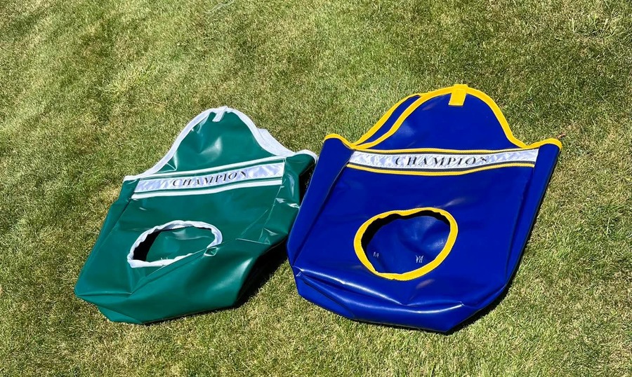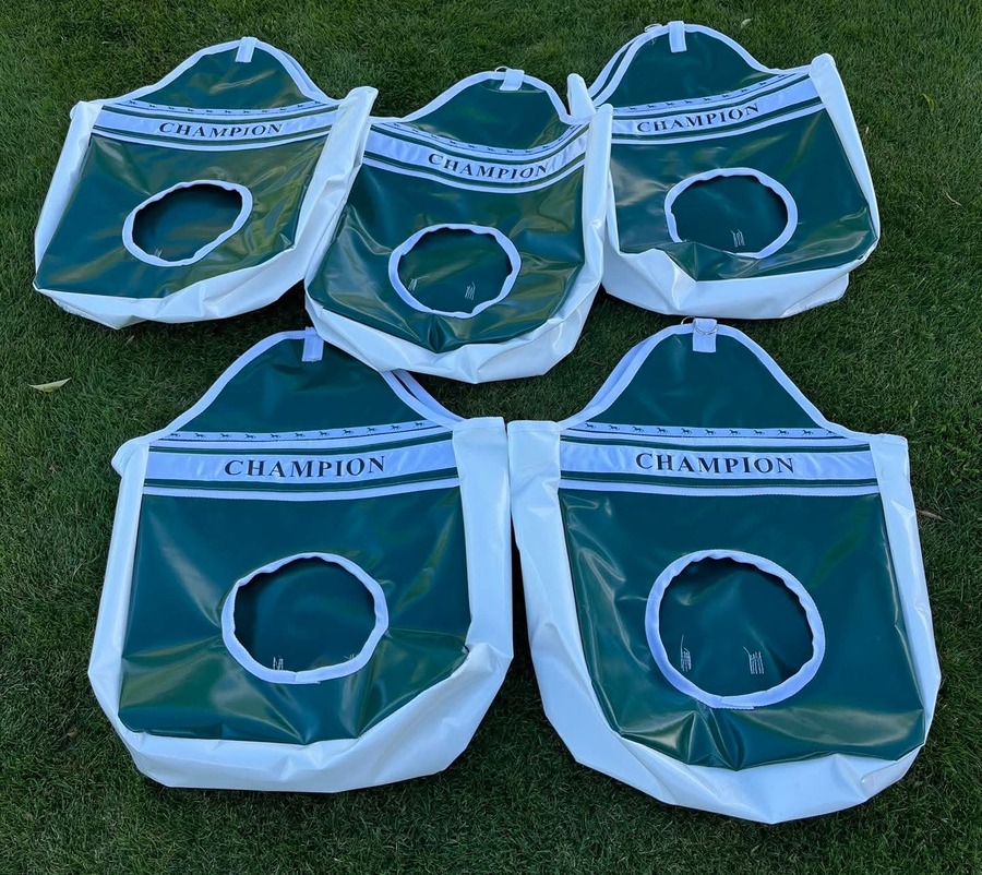 These very special trophy hay bags are a great option for shows, they have our standard hay bag features which are Practical, durable, and built to last, our hay bags are perfect for everyday use at home or on the go. Each bag holds 2–3 slices of hay and is crafted from strong PVC with UV-protected binding, making them tough enough to handle daily wear while keeping your feed secure. Designed with sturdy loops at the top for easy hanging, they’re convenient to use in the stable, yard, or float.