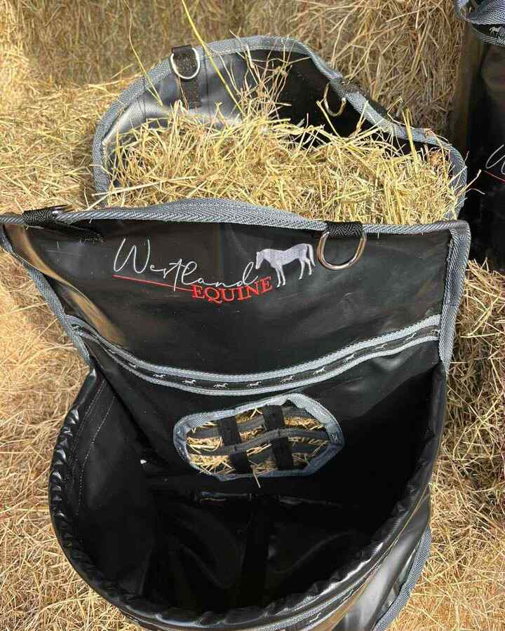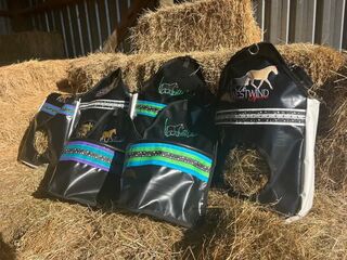 Westwind Equine feed and hay bags combos are a essential part of your stable kit, the hay bag part is the same as our standard hay bag and holds a decent two slices