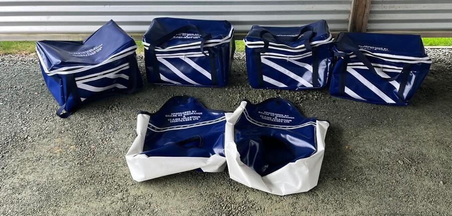 Our gear bags are built to handle it all – made from super-strong PVC with UV-protected binding for long-lasting durability. Featuring stripes on the front they combine toughness with style.
