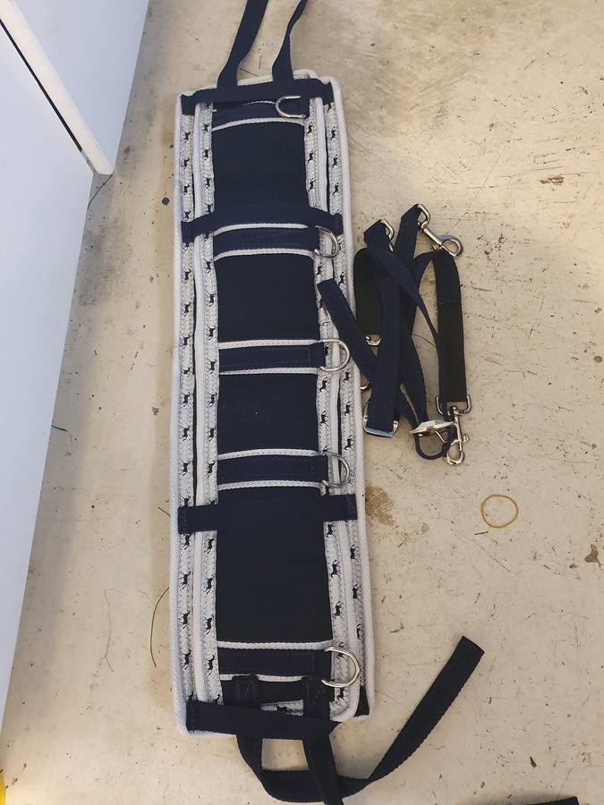Match your stable colours with one of our super smart lunge roller sets. The set includes a lunge roller, lunge pad and side reins all matching. The roller is extra padded over the wither and made from a heavy cotton drill, matching ribbon and your choice of colour binding to add your colours. Lots of colour combinations are available.